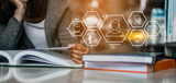 Asian woman student college opening and reading a book at library.library.Education, Learning, Student, Campus, University, Lifestyle concept.