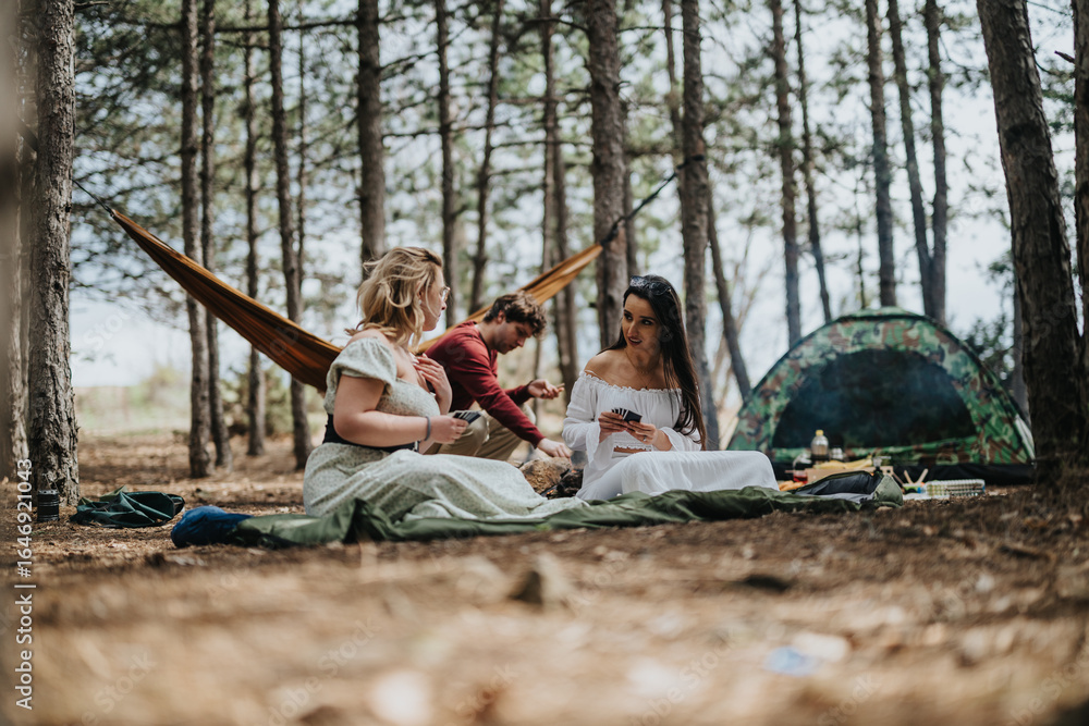 A depressed man is sitting in cafe at the table and desperately waiting for the meeting while looking at his phone.