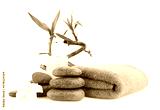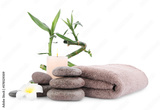 Composition with spa stones and bamboo on white background