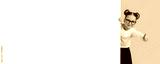 Educational Ad. Schoolgirl Peeking Behind Blank Advertisment Board And Showing Thumb Up