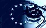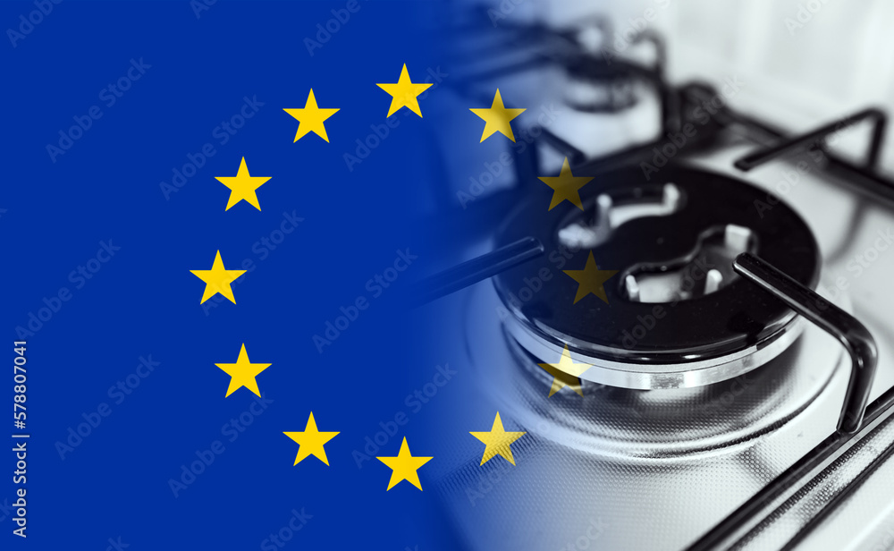 Europe Union flag and gas stove burner.