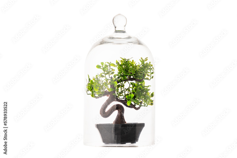 Bonsai Baobab Miniature green tree in pot under glass dome