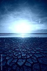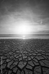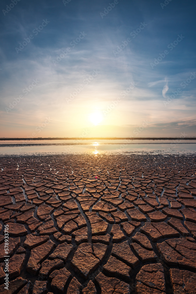 Cracked Earth Pattern Texture and lake at sunrise
