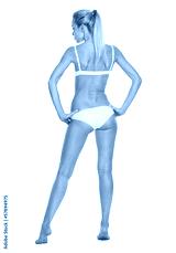 Full length portrait of young woman in lingerie . rear view