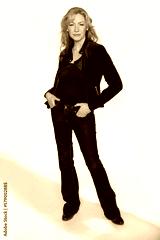 Attractive Smiling Middle Aged Woman in Jeans Studio Portrait on White Background
