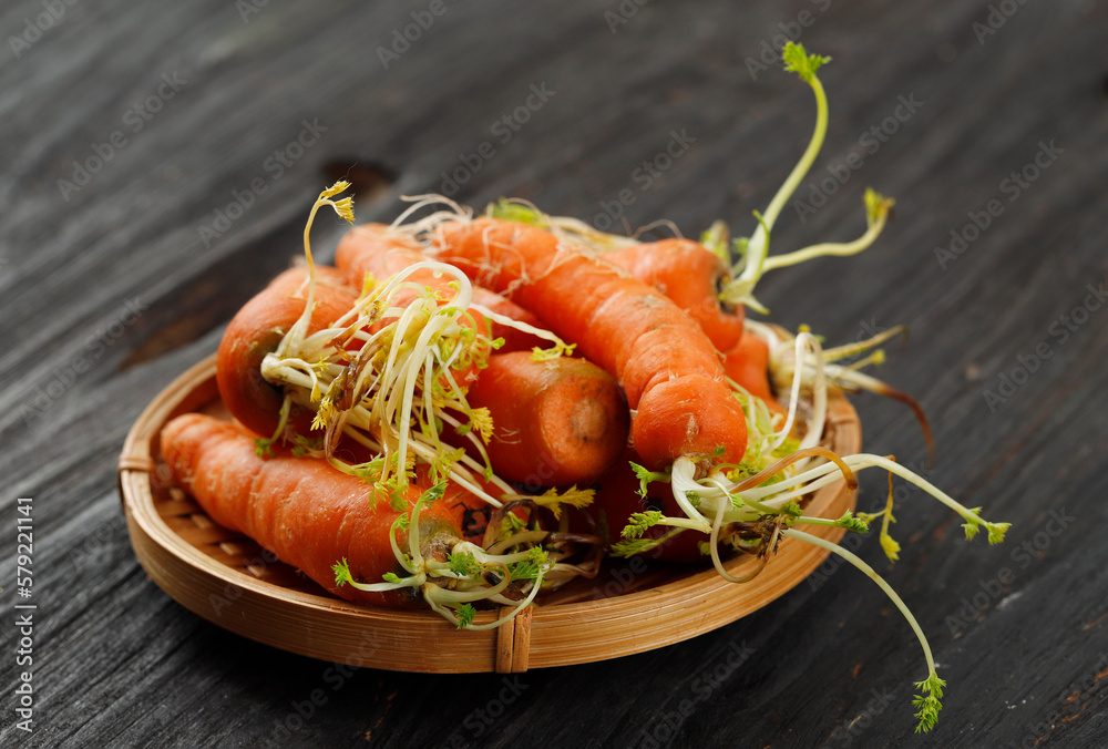 Not Fresh Rotten Carrot, Carrot wth Sprout on Bamboo Plate