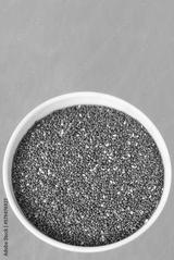 Organic chia seeds in a bowl, selective focus.