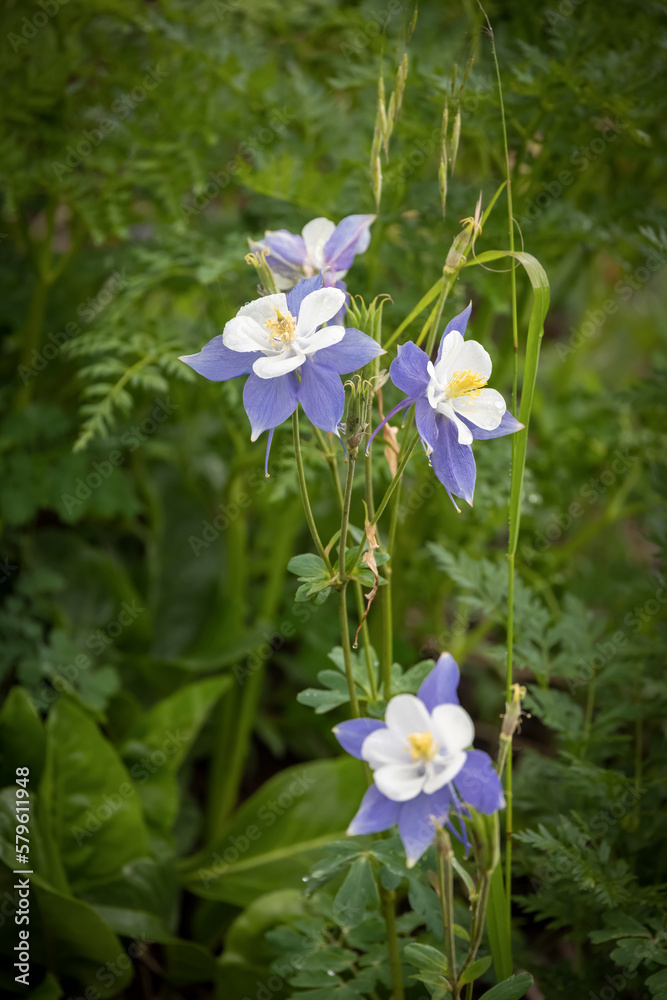 Close up view of Colorado's state flower Blue Columbine in the meadow.