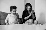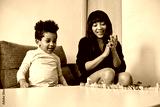 A mother playing with son at home