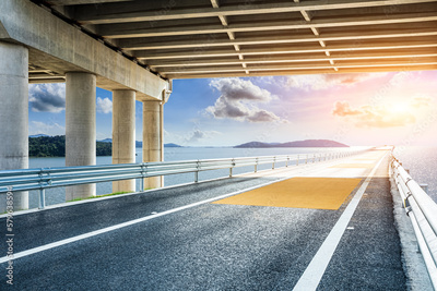 Asphalt road and bridge with sea natural background in Zhoushan, Zhejiang Province, China.