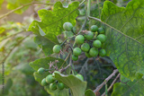 Green organic Turkey berry eggplant on branch . Herbal plant in Thailand and used as an ingredient for many Thai dishes.