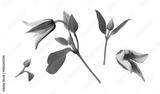 Set of purple flowers and buds of clematis isolated on white or transparent background