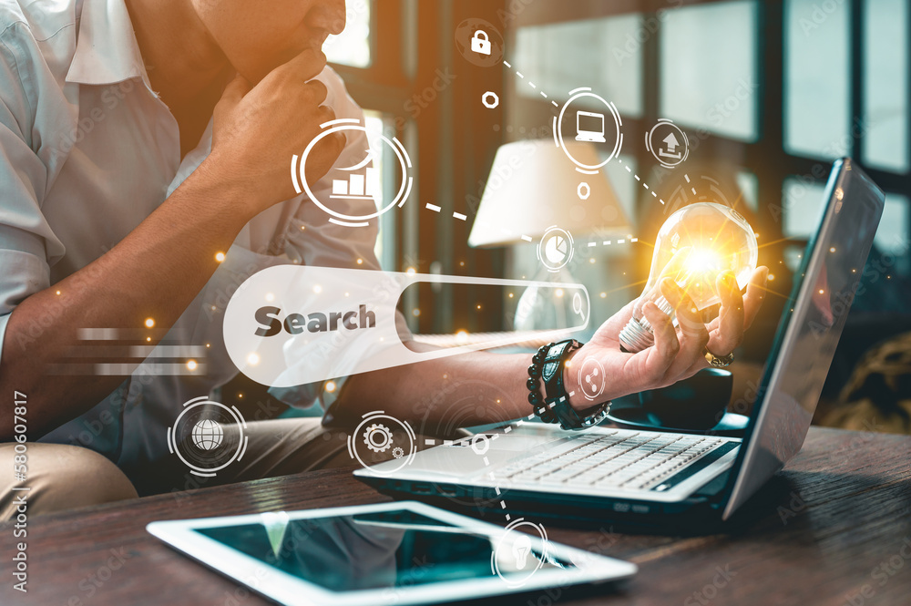 Light blub on businessman hands.Concept Innovation, inspiration, creative solution idea for modern business intelligence technology.Success creativity invention,