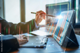 Businesswoman working on digital tablet new business project. Marketing plan and analyzing sales to come up with strategies for marketing to increase, investment graph and strategy concepts.