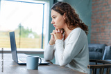 Young woman entrepreneur working from home. Businesswoman using laptop in home office