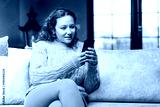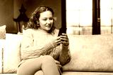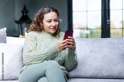 Young woman using phone at home