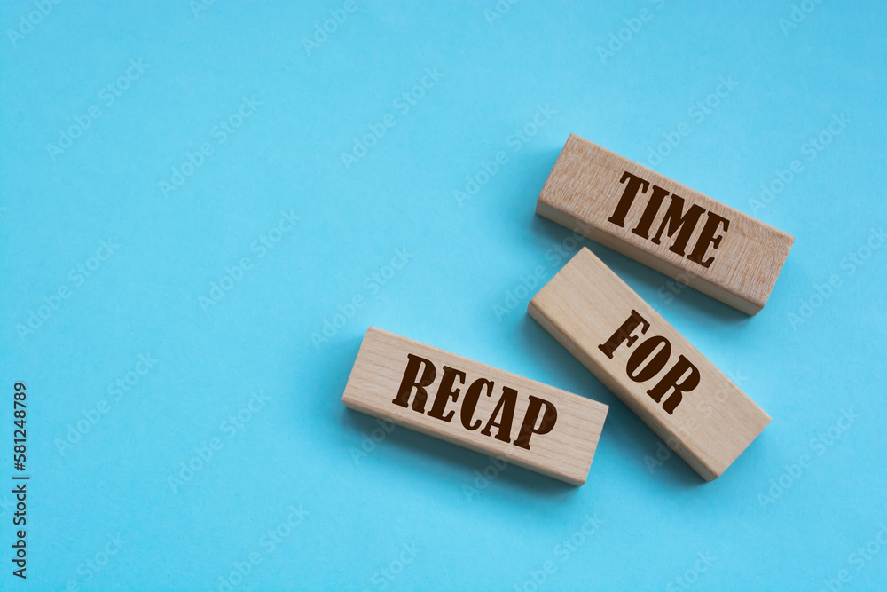 TIME FOR RECAP - words from wooden blocks with letters, Business concept