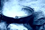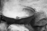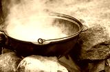 cooking on the iron pot outdoor in fire