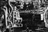 Automotive mechanical assembly, engine, transmission, suspension and breaking system. Automotive engine assembly line is in production. Car Assembly by parts, Diesel locomotive engine in a repair