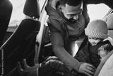 Father, help or child with seat belt for safety traveling on vacation, road trip or holiday in car together. Transportation, dad or happy parent with young kid or boy in vehicle for family weekend