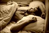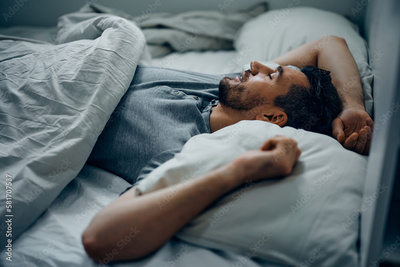Mid adult man sleeping peacefully in his bed.