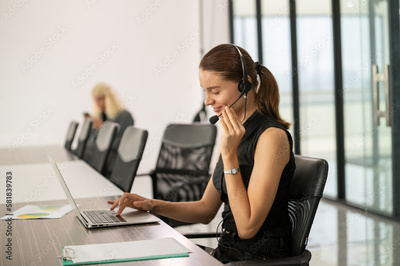 businesswoman using laptop conference with customer