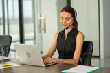businesswoman using laptop conference with customer