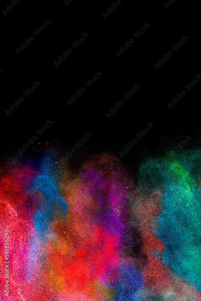 Explosion of multi-colored paint, bright vibrant pigments. Noisy dust and powder texture, flicker and shimmer noise