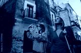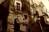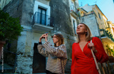 Woman and her daughter exploring old city.
