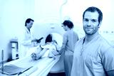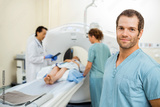 Nurse With Colleague And Radiologist Preparing Patient For CT Sc