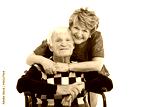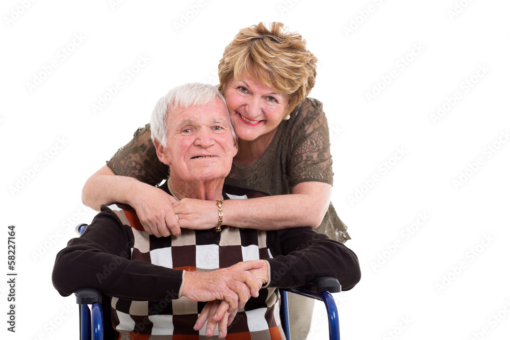 elderly wife hugging handicapped husband