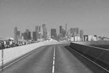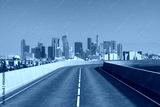 Empty urban asphalt road exterior with city buildings background. New modern highway concrete construction. Concept of way to success. Transportation logistic industry fast delivery. Los Angeles. USA.