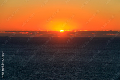 View of the Atlantic Ocean from Cabo da Roca at sunset. Cabo da Roca or Cape Roca is westernmost cape of mainland Portugal, continental Europe and the Eurasian land mass