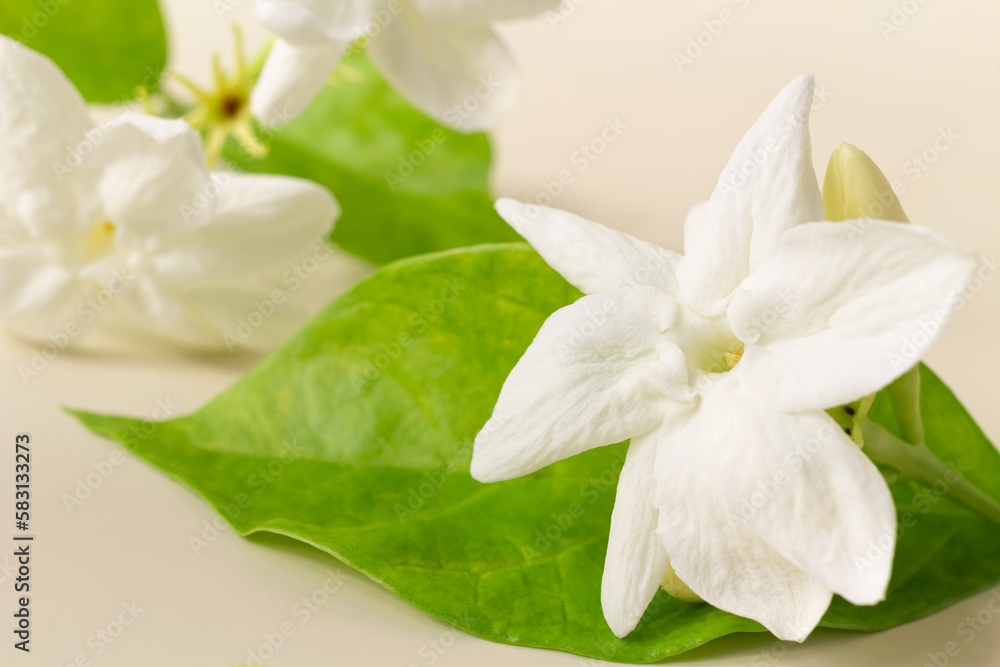 White mogra or arabian jasmine or Jasminum sambac flower Buds on Beige background