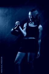 Dark Haired Girl Posing with a Kettle bell for a Fitness Photo shoot
