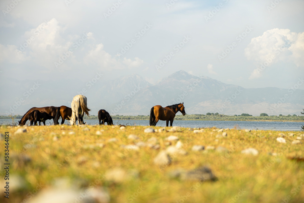 Horses by the lake in Albania