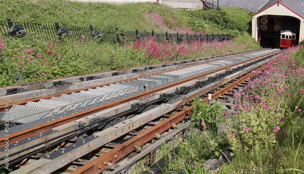 The Rail Track of a Steep Coastal Cliff Railway.