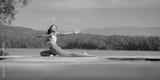 Beautiful attractive Asian woman practice fitness yoga pose on the pool above the Mountain peak in front of nature lake views, Feel so comfortable lifestyle and relax exercise in holiday morning