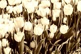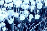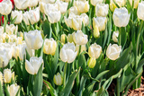 Large flowerbed of white tulips in the park at spring