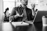Business executive speaking on a phone call in an office