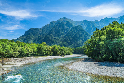 夏の上高地 梓川と六百山【長野県・松本市】 Beautiful scenery of Kamikōchi with fresh greenery - Nagano, Japan