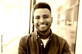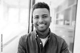 Close-up portrait of a happy indian young man with friendly wide toothy smile, latin guy wearing casual ggreen shirt looks into camera, employee profile photo