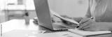 Woman calculating monthly expenses, taxes and interest calculate at home..