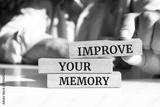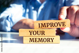 Close up on businessman holding a wooden block with "Improve Your Memory" message