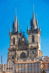 Cityscape of Prague with medieval towers and colorful buildings, Czech Republic