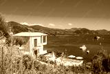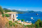 Aerial view of iconic paradise sandy beaches with turquoise sea in complex islands of Agios Nikolaos and Mourtos in Sivota area, Epirus, Greece