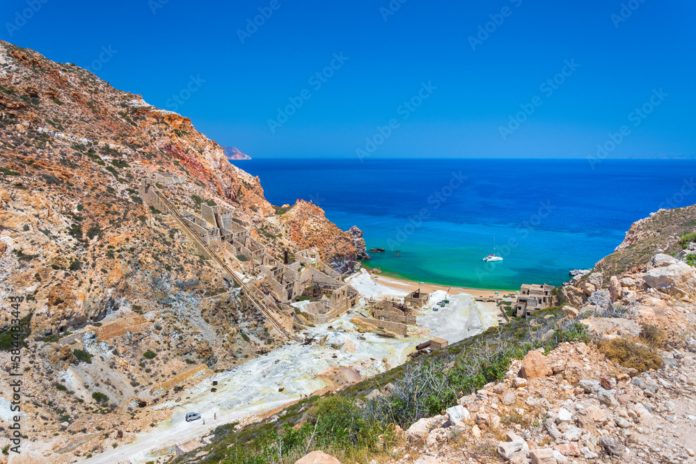Abandoned sulfur mines and beach, Milos island, Cyclades, Greece