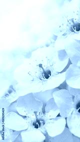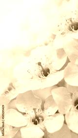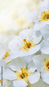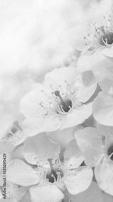 Banner with cherry blossom branches in nature outdoors. Macro shot of flowers in sunlight with copy space. Beautiful image of a panoramic view of spring nature