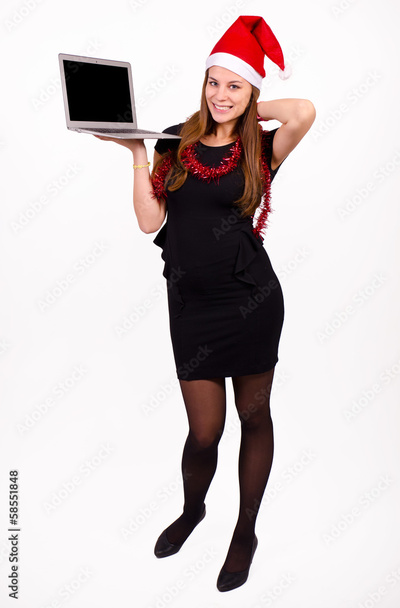 Santa Claus woman holding a laptop