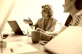 Mature business woman discussing a project with her team in an office